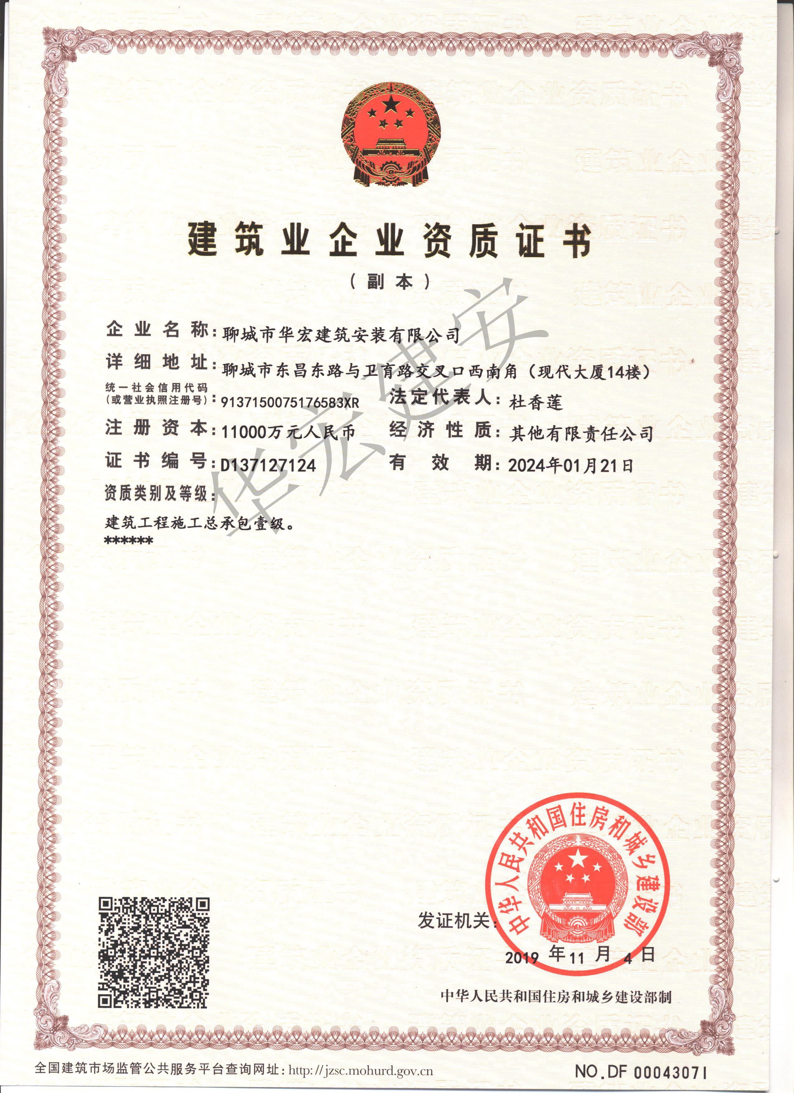 聊城市華宏建筑安裝有限公司成立于2002年5月,公司自2002年成立以來,不斷發(fā)揚 “敬業(yè)修身 打造精品 開拓創(chuàng)新 弄潮勇進”的創(chuàng)業(yè)精神,始終遵循“以質(zhì)量求生存、靠精品創(chuàng)品牌、憑信譽贏市場”的宗旨,認真奉行“科學(xué) 高效 一流”的質(zhì)量方針